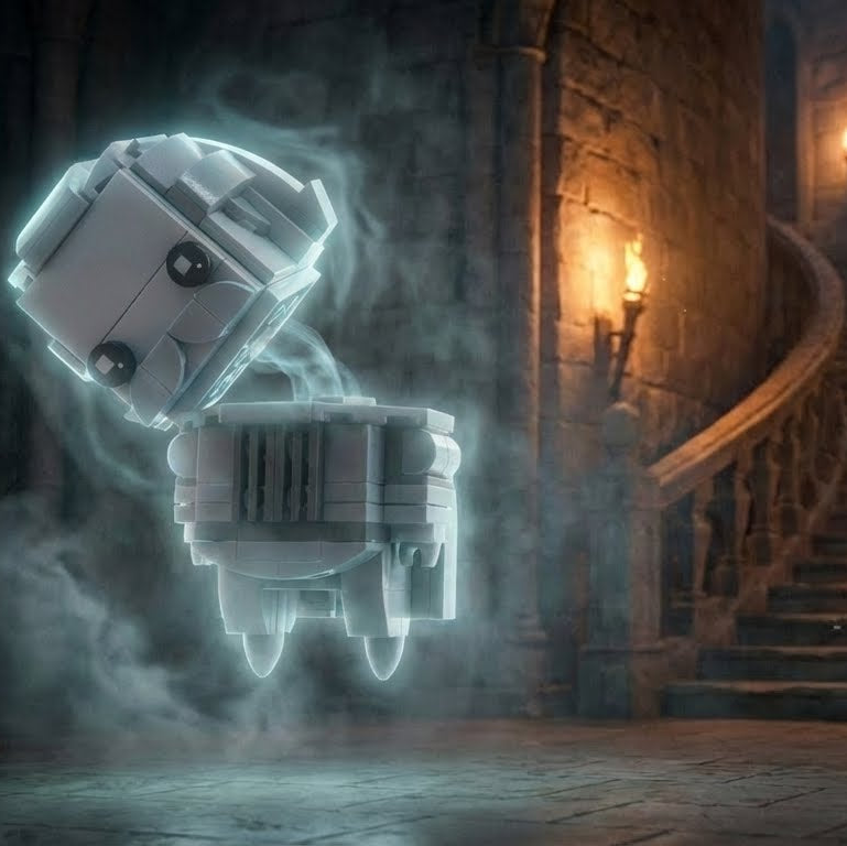 Armor remembered, honor intact. He drifts between torches and shadows, carrying centuries in his silence. When he passes, the air turns lighter — and colder — as if the castle itself exhales.